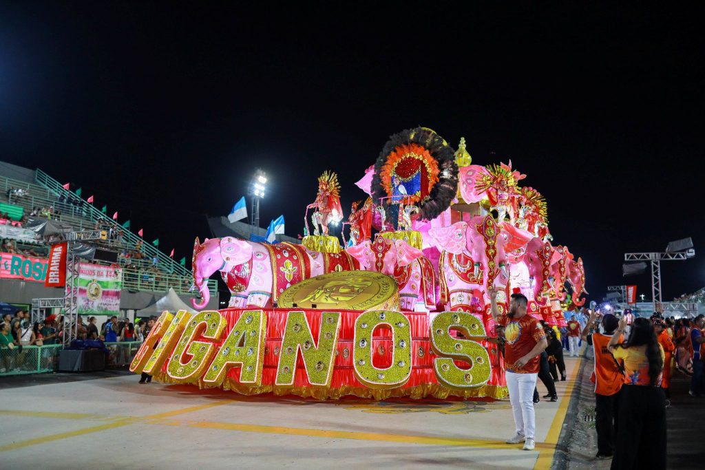 Na sequência, a Vitória Régia emocionou ao homenagear Bi Garcia, com o enredo “O filho da ilha que encanta o Amazonas”. A porta-bandeira Rafaelle Costa falou sobre a responsabilidade de carregar o símbolo da escola.