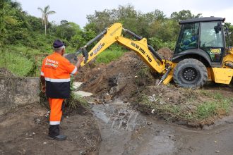 Prefeitura atua em drenagem obstruída por descarte irregular de lixo no Lago Azul
