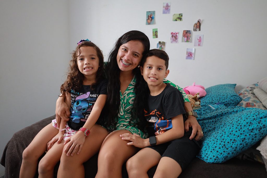 Hoje, a realidade de Aluely e dos dois filhos é outra. Agora, eles acompanham a chuva da varanda do NOVO apartamento, com a segurança que antes parecia distante, e celebram o Natal sem preocupações. Assim como ela, outras 1.734 famílias – cerca de 8,6 mil pessoas – já foram reassentadas das áreas de risco de alagação, na área de intervenção do Prosamin+, e agora vão poder comemorar o Natal em um NOVO lar.