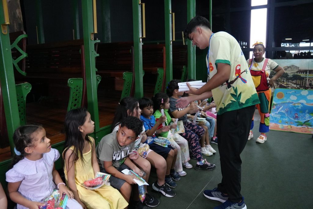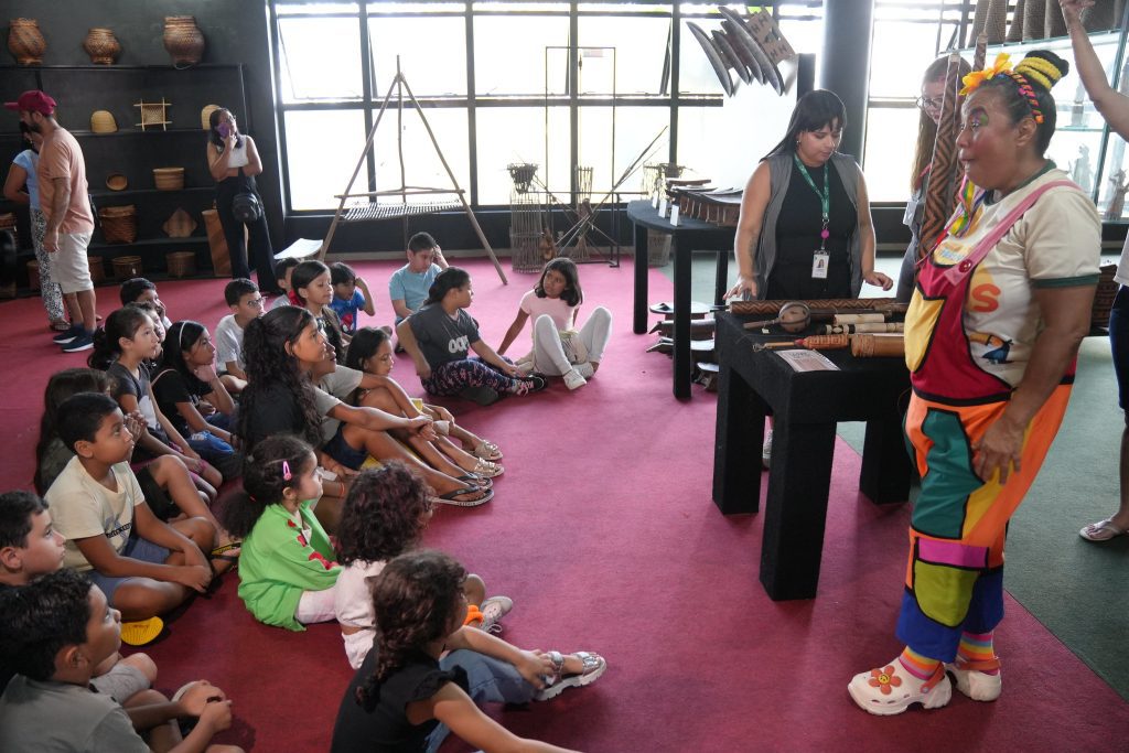 As atividades iniciaram com uma roda de integração, onde as crianças puderam se conhecer e interagir. Em seguida, os participantes visitaram o espaço Cultura em Movimento, localizado no complexo do centro cultural, conhecendo as histórias por trás das peças em exposição, elementos da cultura indígena, as bandeiras dos países da Amazônia, além de referências aos bois-bumbás de Parintins e lendas tradicionais da região.