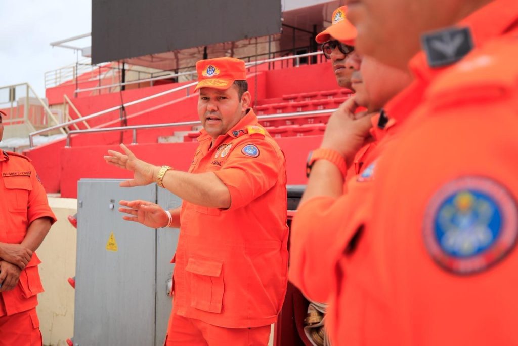 Todo o sistema de incêndio, hidrantes, posicionamento de extintores, rotas de fuga e fogos que serão usados pelas agremiações foram inspecionadas pelas equipes do CBMAM, coordenadas pelo comandante-geral do Corpo de Bombeiros, coronel Orleilson Muniz.