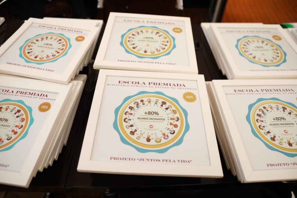 Mais de 40 escolas da REDE estadual de ensino foram premiadas com o selo do projeto “Juntos pela Vida”, do Ministério Público do Amazonas (MPAM), que tem como objetivo reconhecer as escolas com cobertura vacinal de estudantes igual ou acima de 80%, conforme as metas do Programa Nacional de Imunizações (PNI).