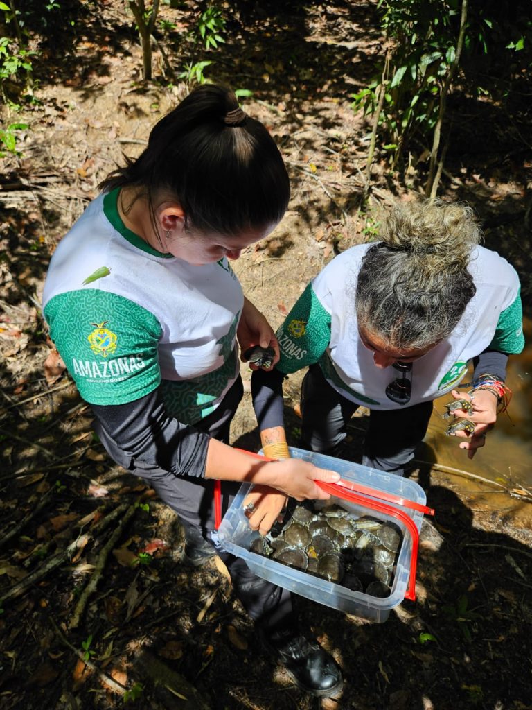A Secretaria de Estado do Meio Ambiente (SEMA) realizou a soltura de 2.528 filhotes de quelônios, entre tartarugas-da-amazônia (Podocnemis expansa) e tracajás (Podocnemis unifilis), em duas Unidades de Conservação do Mosaico do Apuí, no sul do Amazonas.